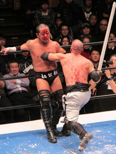 2013年1月2日(水) 大日本プロレス 後楽園ホール World war 2013バーブドワイヤーボード&ライトチューブ六人タッグデスマッチ 葛西純&MASADA&竹田誠志vs”黒天使”沼澤邪鬼&ドレイク・ヤンガー&ダニー・ハボック ハボック(13分51秒 蛍光灯束へのデスバレーボム⇒片エビ固め)竹田