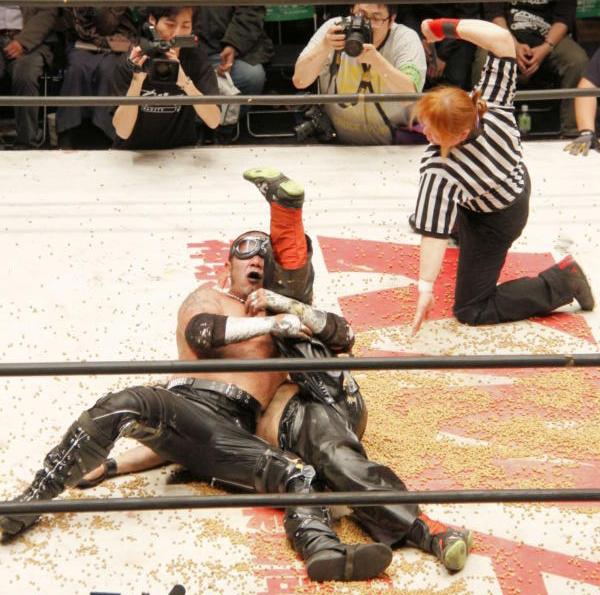 2013年3月30日(土) 大日本プロレス 後楽園ホール 045邪猿気違’Svsバカ兄弟 葛西純&”黒天使”沼澤邪鬼vsバラモン・シュウ&バラモン・ケイ 葛西(9分4秒パールハーバースプラッシュ⇒片エビ固め)ケイ