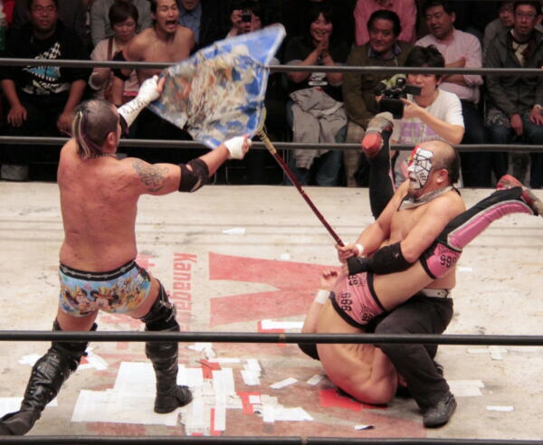 2013年4月28日(日) 大日本プロレス 後楽園ホール 葛西純&”黒天使”沼澤邪鬼&バラモン・シュウ&バラモン・ケイvs佐々木義人&石川晋也&河上隆一&忍 忍(13分1秒S.E.X⇒片エビ固め)ケイ