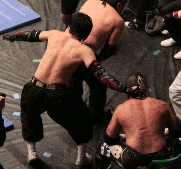 2013年5月27日(月) 大日本プロレス 後楽園ホール perfect and faultless 4 corner pain デスマッチ 蛍光灯+有刺鉄線+画鋲+α 葛西純&“黒天使”沼澤邪鬼&竹田誠志&塚本拓海vs石川修司&宮本裕向&木高イサミ&伊東竜二 石川(16分11秒スプラッシュマウンテン⇒エビ固め)塚本