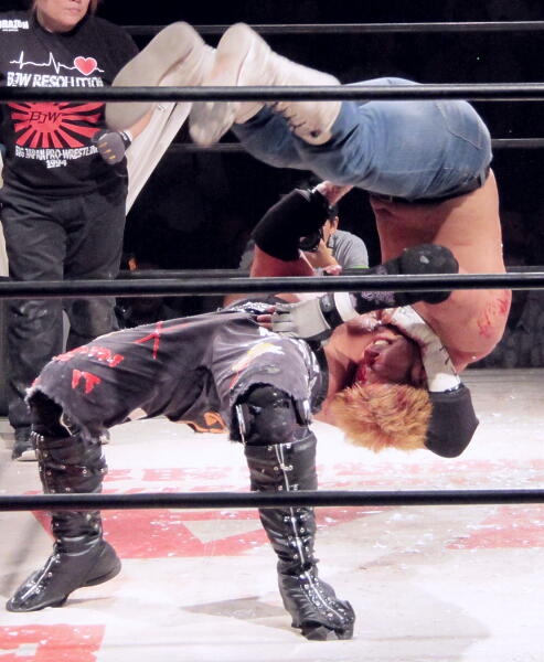 2013年7月3日(水) 大日本プロレス 新木場1stRING B FAULTLESS JUNKY'S スペシャルタッグデスマッチ perfect and faultless 4-corner pain デスマッチ 葛西純&“黒天使”沼澤邪鬼vs竹田誠志&塚本拓海 (30分00秒時間切れ引き分け)