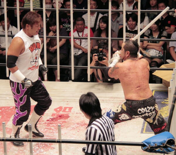 2013年7月26日(金) 大日本プロレス 後楽園ホール 蛍光灯DOUBLE BET六人タッグデスマッチ 葛西純&”黒天使”沼澤邪鬼&竹田誠志vs石川修司&シャドウWX&佐々木貴 沼澤(14分19秒蛍光灯へのラストライド⇒体固め)WX