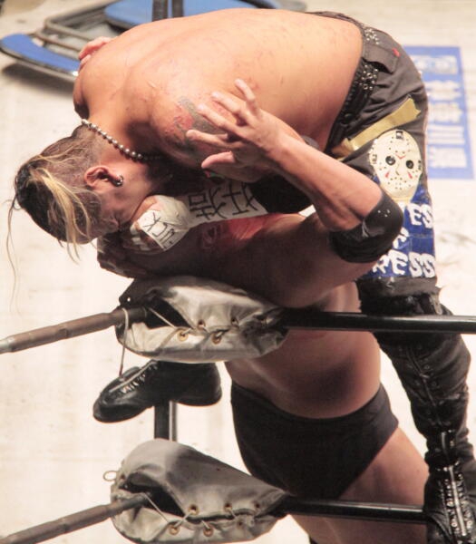 2013年9月25日(水) 大日本プロレス 後楽園ホール 大日本最挟タッグリーグAブロック公式戦 葛西純&”黒天使”沼澤邪鬼vs関本大介&岡林裕二 岡林(19分7秒イス上へのパワーボム⇒エビ固め)沼澤