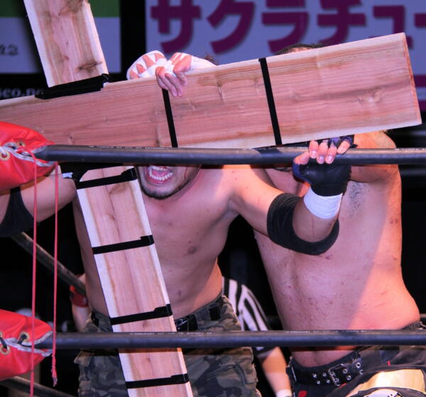 2013年2月4日(月) 大日本プロレス 新木場1stRING 剣山デスマッチ 葛西純vs塚本拓海 葛西(16分18秒タイガースープレックスホールドwith剃刀ボード)塚本